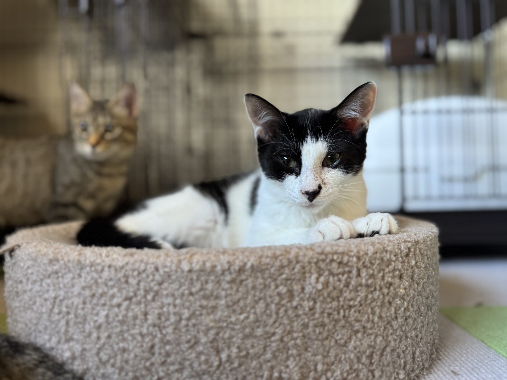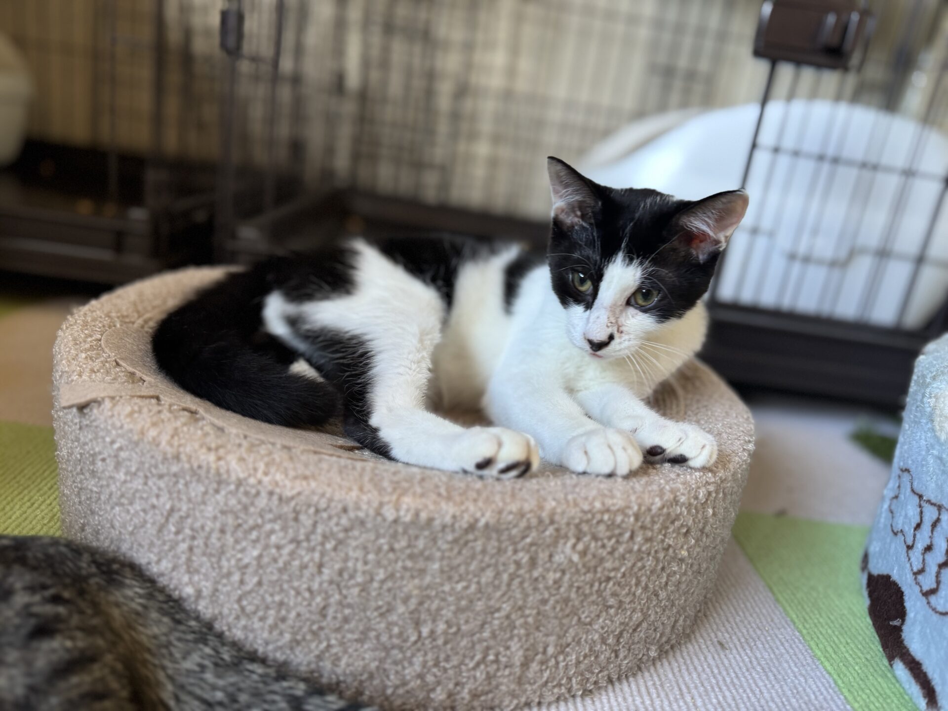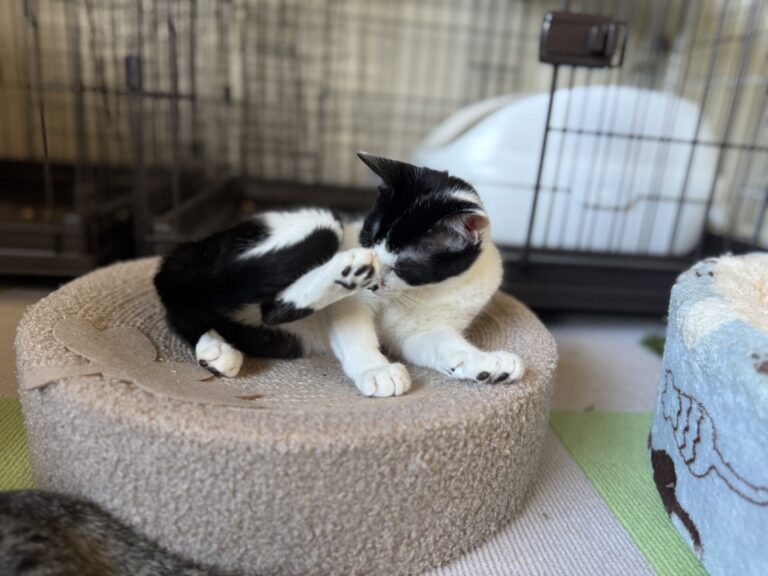 兄妹が国道沿いを彷徨っている所を保護。周辺聞き込みした結果野良猫の集団があり、子猫は保護をした。