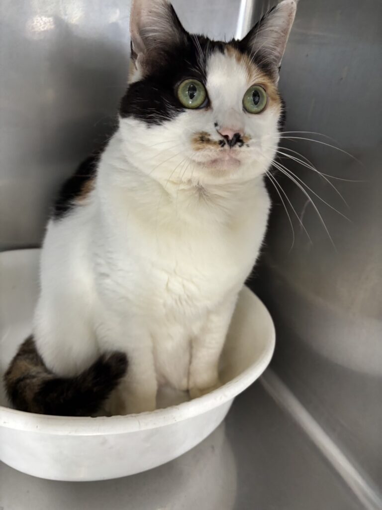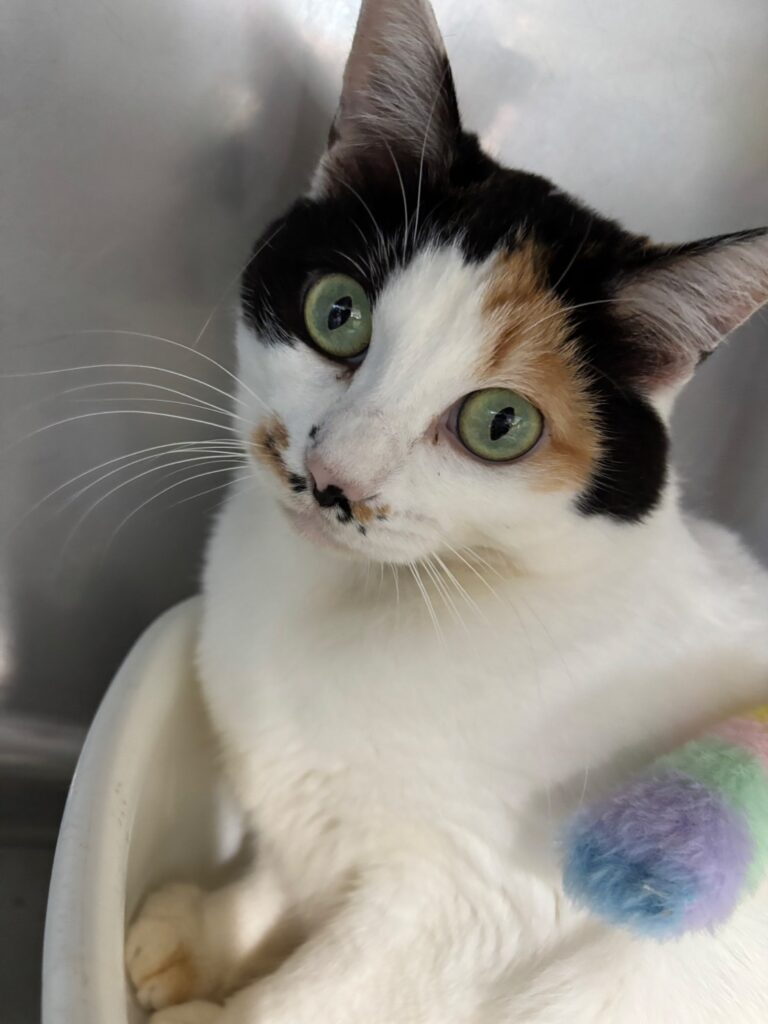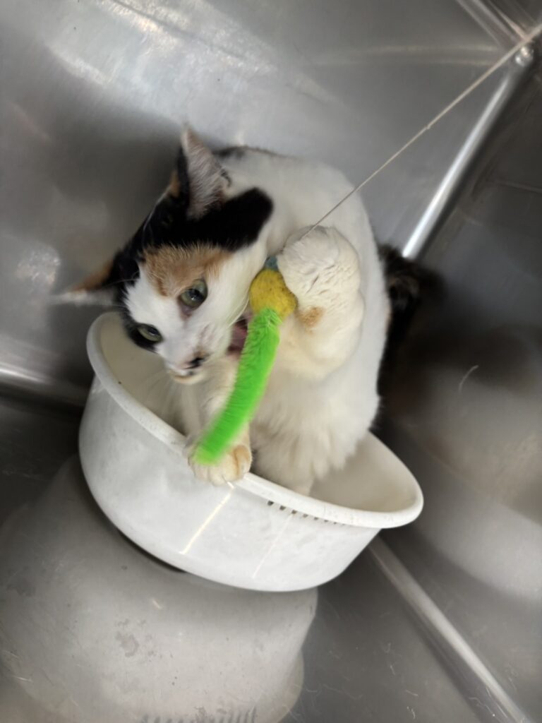 気が強く、ザ三毛猫!という感じですが甘えん坊で撫でられるのが大好きです。テンションが上がると甘噛みしてしまいます。