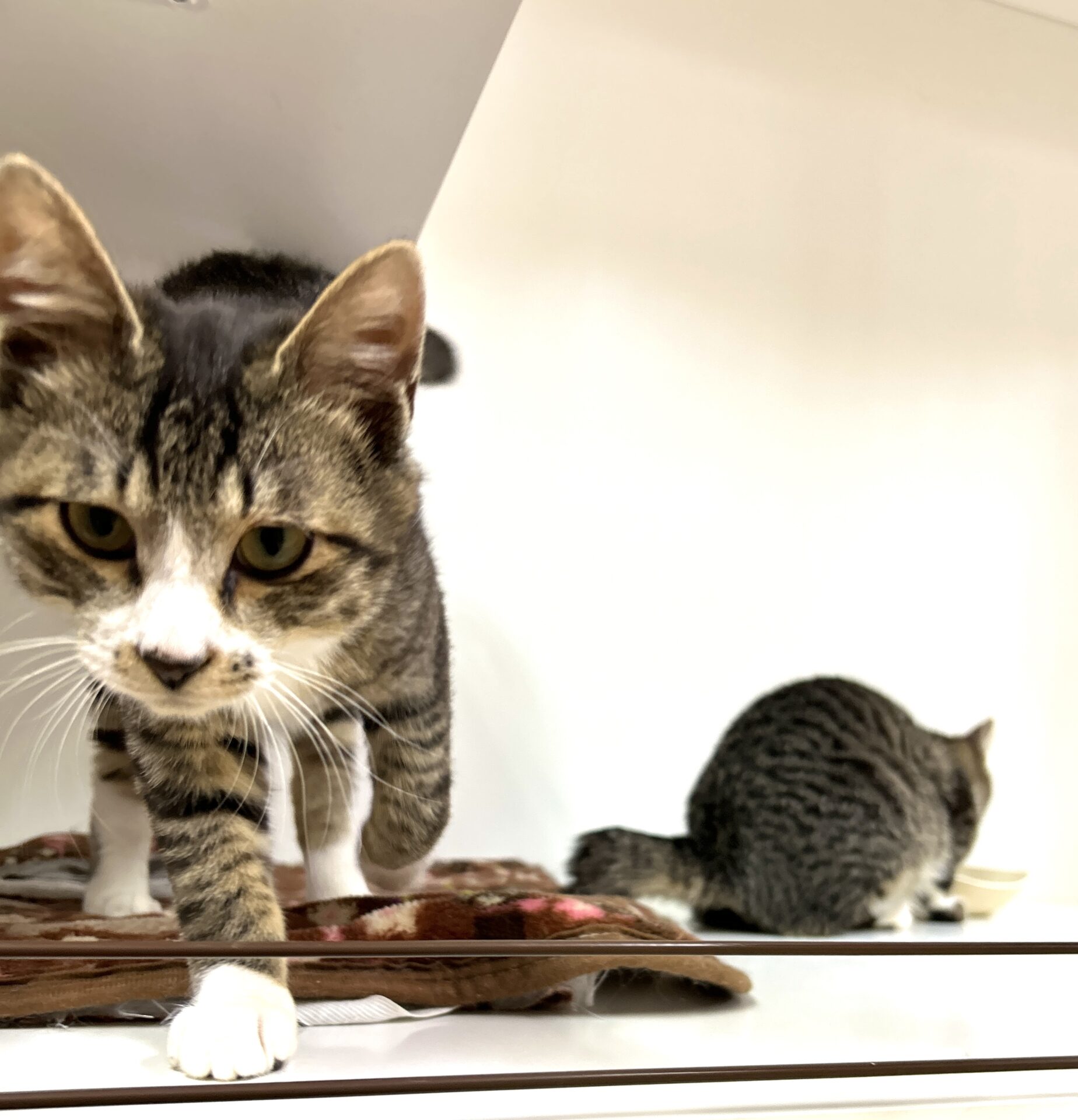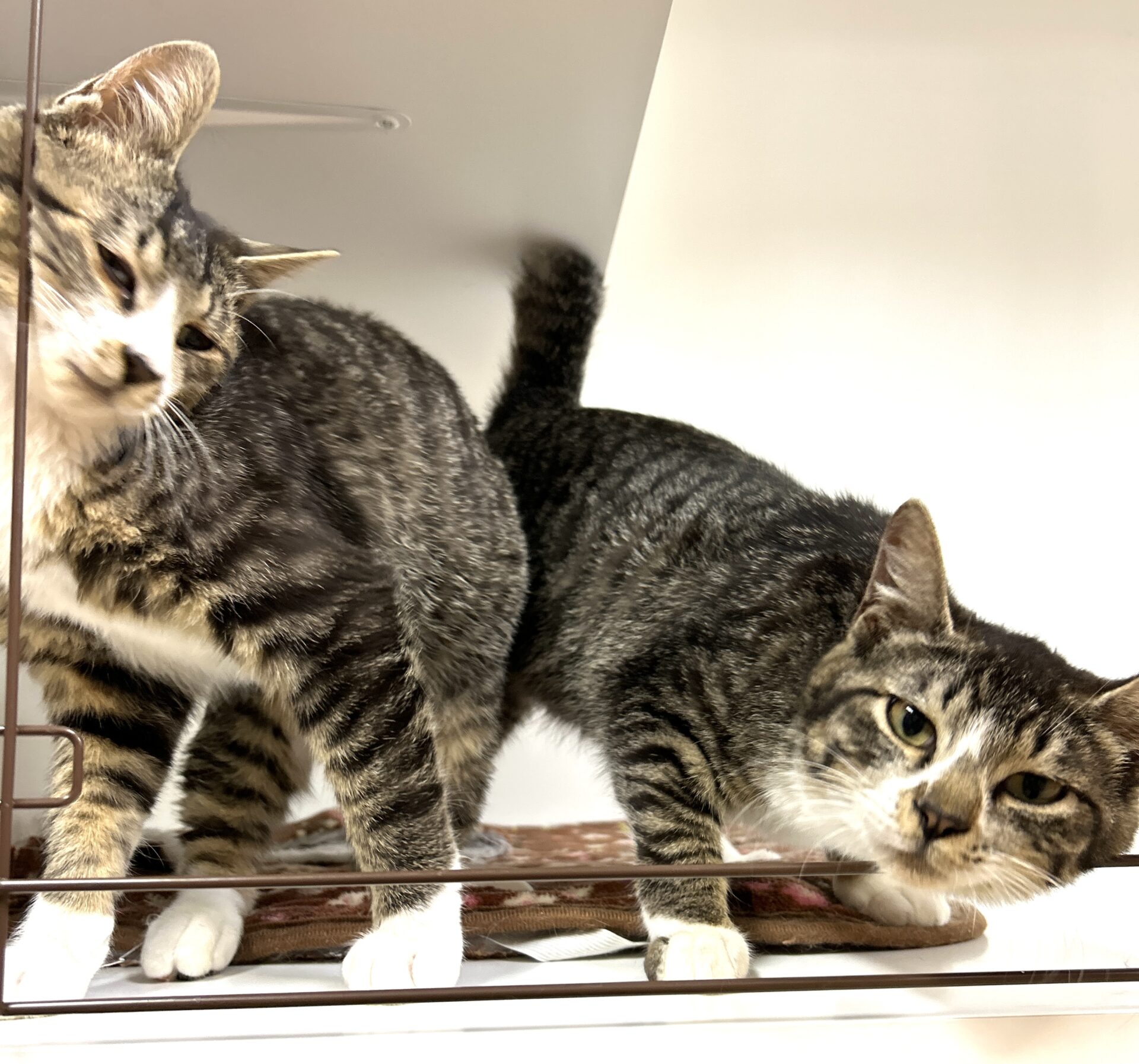 2匹でころころニャンプロしたり、人間が近づくと遊べ遊べ!とぐいぐいしたり、とにかく元気いっぱい。