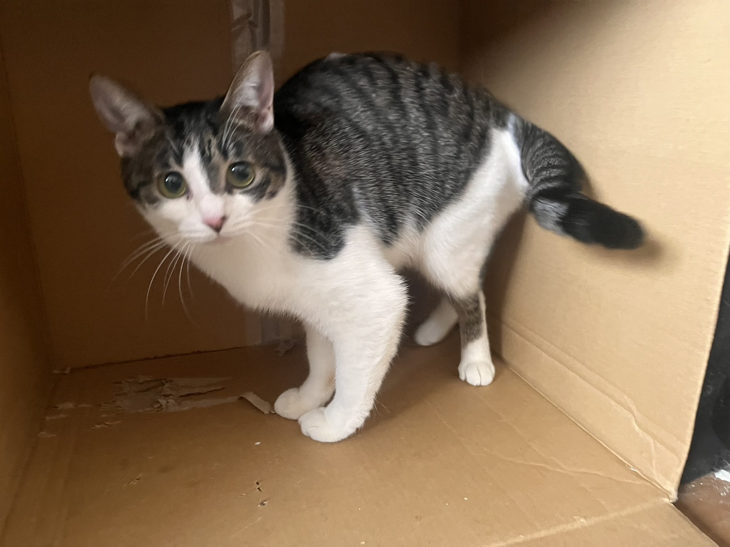 遊ぶのが大好きで、オモチャ遊びはもちろん他の猫と追いかけっこしたり、一人遊びで猛ダッシュしています。