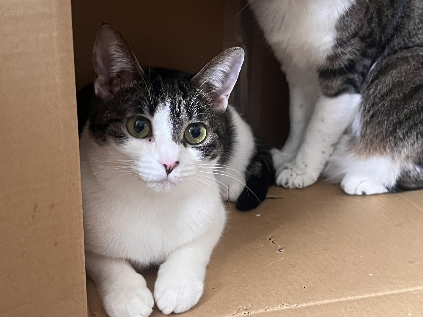 今のところどの猫ともうまくやれていて、遊び相手がいれば絡むし、遊びたがらない子には絡まないさっぱりしたタイプです。