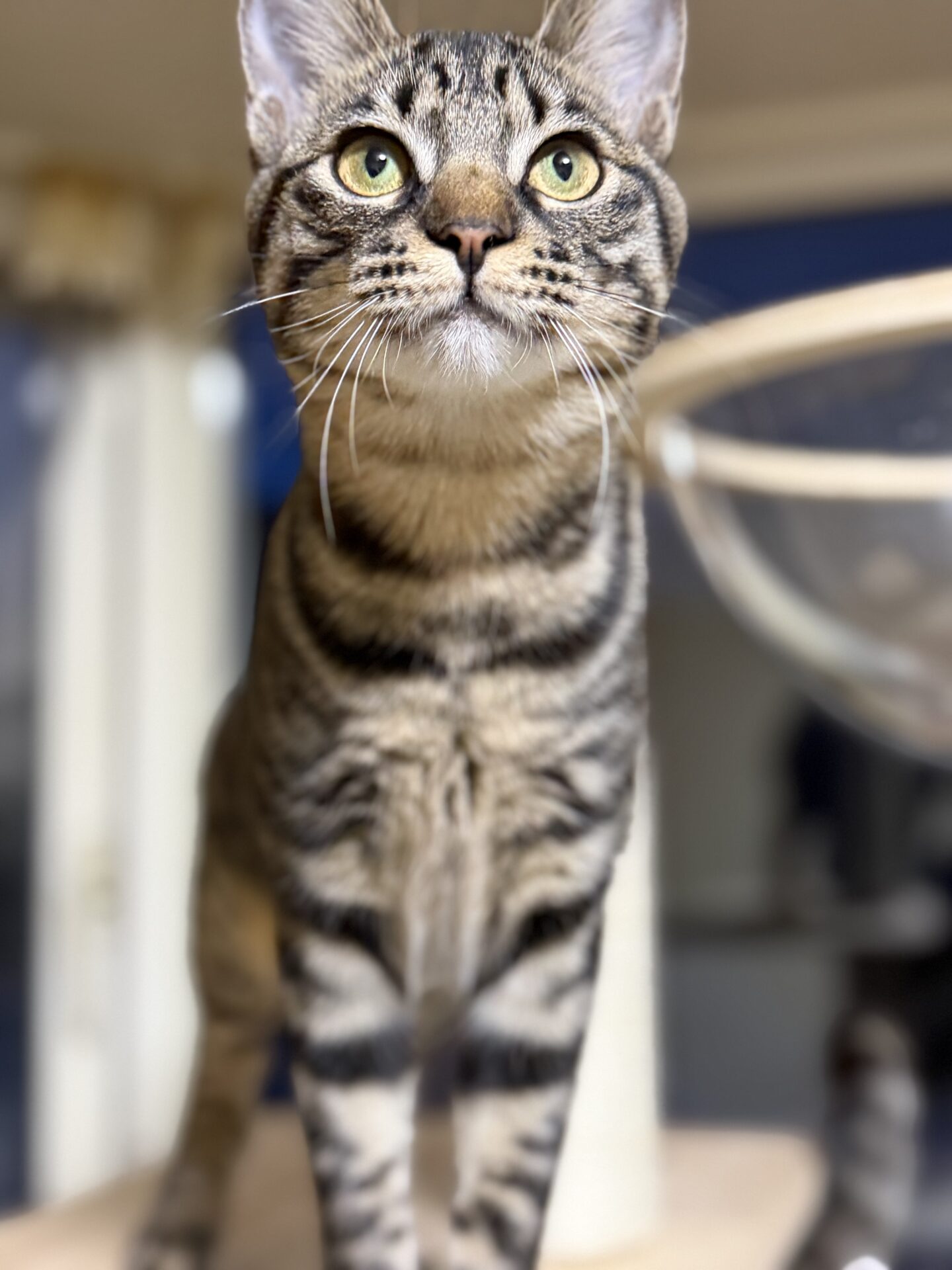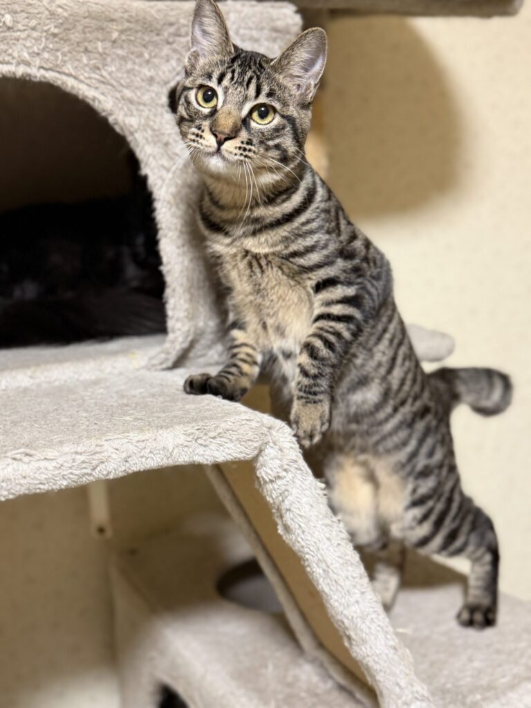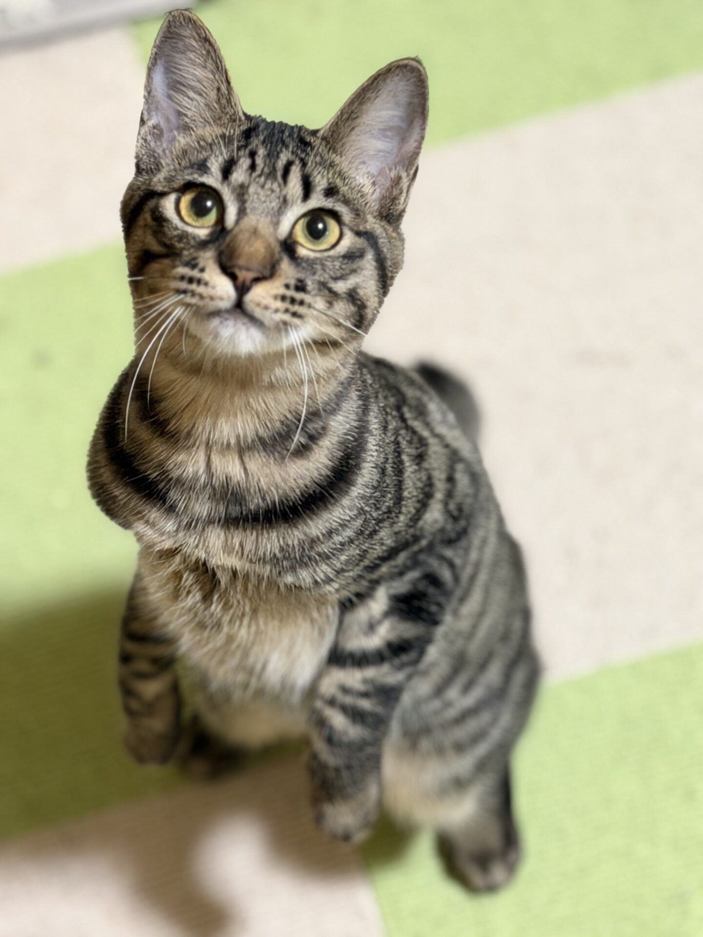 自分からはなかなか恥ずかしいのか甘えに来ませんが、他の子が甘えていると、近くには寄ってきて様子を伺ってるもどかしい性格です。