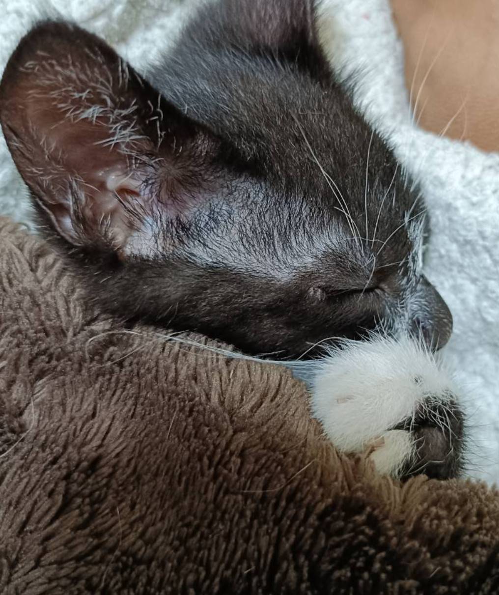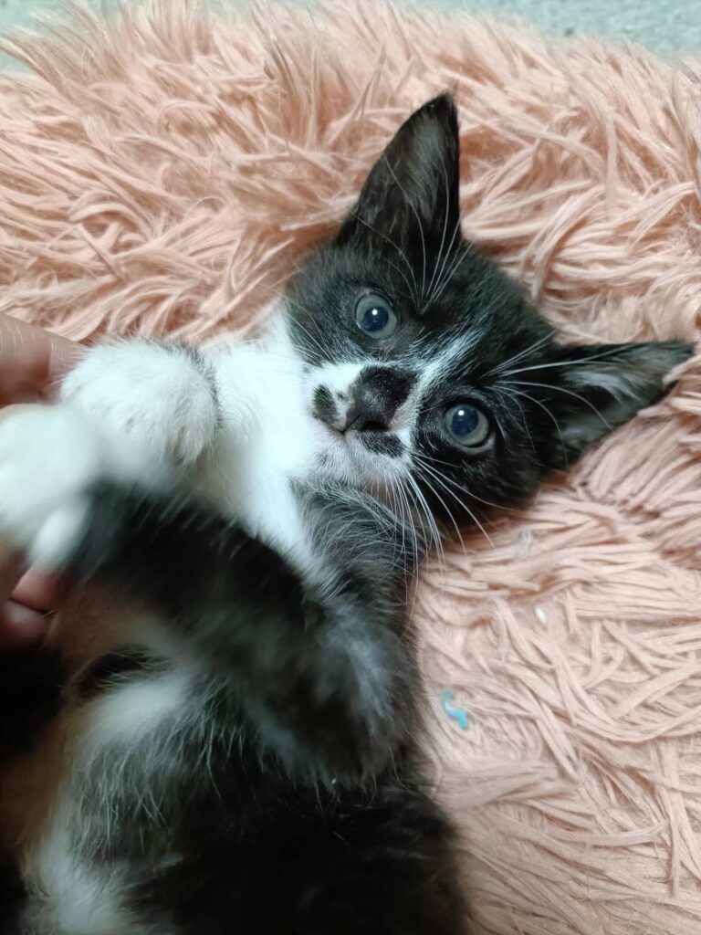 大きい猫とも同じくらいの月齢の猫とも仲良く出来て社交性の高い子です。