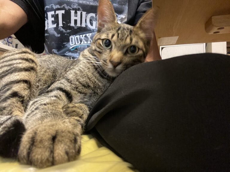 めちゃくちゃ甘えっ子で、お膝の上に来て撫でてもらうのが日課です。