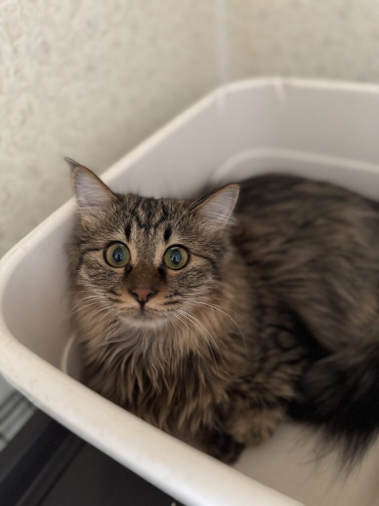まだ人馴れ訓練中でシャーは挨拶です。背中を撫でると気持ちよさそうにうっとりして可愛い声で甘えてくれます。ふと我に返りシャーしちゃうけど、甘えん坊要素はあります。