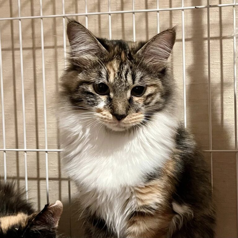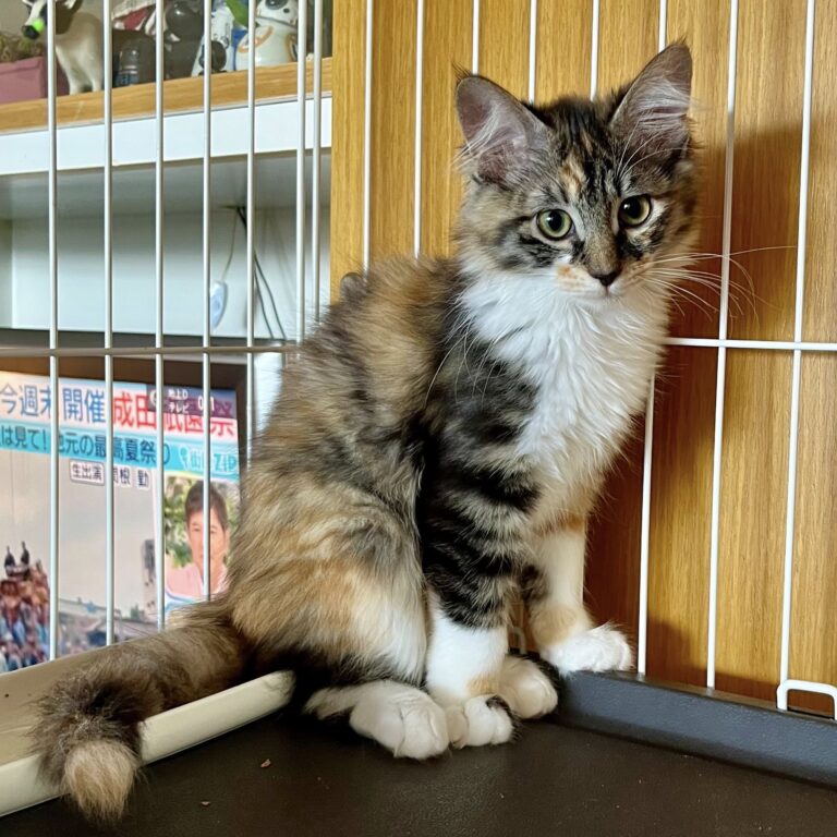 ふわふわの毛並みの縞三毛ロングのお嬢さんです。
